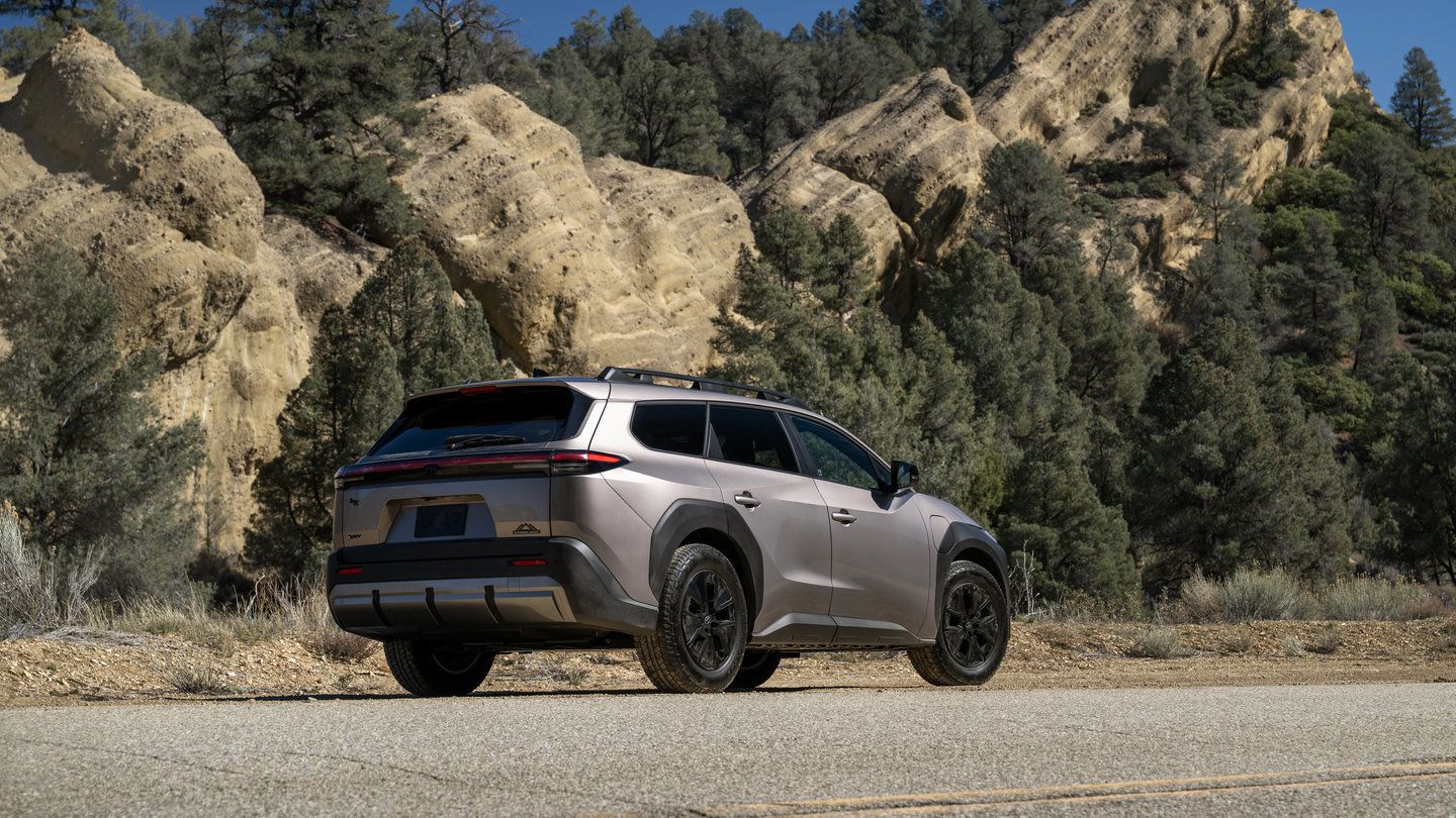 Deux moteurs électriques (un à l’avant, un à l’arrière) génèrent une puissance nette combinée de 375 chevaux. Le bZ Woodland peut accélérer de 0 à 100 km/h en 4,4 secondes selon les estimations de Toyota. La batterie lithium-ion d’une capacité totale de 74,7 kWh est logée à plat sous le plancher, ce qui abaisse le centre de gravité du véhicule et contribue à sa stabilité en virage.