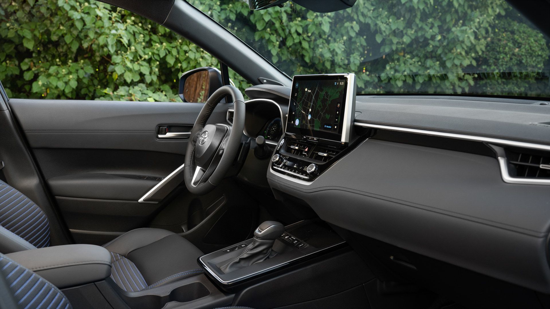 L'écran tactile multimédia de 10,5 pouces intègre le système multimédia Toyota avec les applications Apple CarPlay et Android Auto (sans fil). Un tableau de bord à affichage numérique sur un écran de sept pouces complète l'ensemble pour afficher les informations essentielles relatives à la conduite. La chaîne audio à six haut-parleurs, le couvercle de coffre et le système d'accès intelligent avec démarrage par bouton-poussoir font également partie de l'équipement de base.